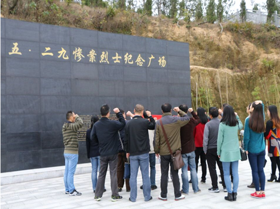 在罗田胜利革命烈士陵园,全体党员向烈士三鞠躬表达敬意,深切缅怀牺牲的革命烈士并仔细瞻仰了革命烈士生平事迹。在五·二九惨案烈士纪念广场全体党员重温入党誓词,并认真了解了惨案发生过程和英雄们的革命精神。本次主题党日活动使得全院党员增进了交流,既学习也实践,同心同德为进一步做好2016年收尾工作、开启2017年新篇章奠定了良好的基础。