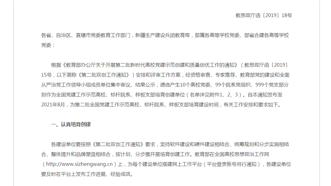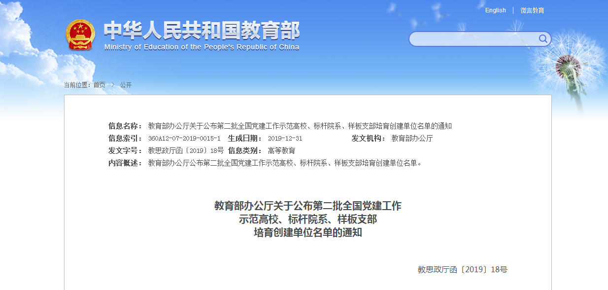 近日,教育部思想政治工作司公布第二批新时代高校党建示范创建和质量创优工作结果,我院思想道德修养与法律基础形势与政策党支部获评“全国党建工作样板支部”。本次评选根据《教育部办公厅关于开展第二批新时代高校党建示范创建和质量创优工作的通知》(教思政厅函〔2019〕15号),经申报和资格审查、专家推荐、教育部党的建设和全面从严治党工作领导小组成员单位集中审议,遴选产生了10个党建工作示范高校、100个党建工作标杆院系、1000个党建工作样板支部。