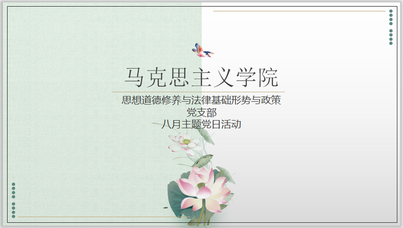 2020年8月24日上午10:00至11:40,思修形策党支部按照学校党委组织部发布的《关于组织开展2020年7-8月份“支部主题党日”活动的通知》要求进行了八月主题党日活动。本次活动由党支部书记蔡潇同志主持,组织委员董夏兰同志和刘琼同志进行领学。