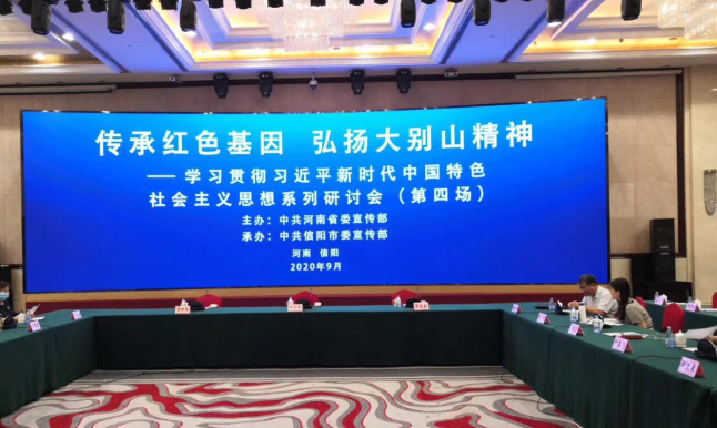 9月8日,由河南省委宣传部主办、信阳市委宣传部承办的“传承红色基因 弘扬大别山精神——学习贯彻习近平新时代中国特色社会主义思想系列理论研讨会(第四场)”在信阳举行,来自鄂豫皖三省的专家学者围绕大别山精神的深刻内涵、大别山精神在中国共产党精神谱系中的重要地位、大别山精神的时代价值等进行了深入的交流探讨,针对如何将传承弘扬大别山精神与老区建设结合、将大别山红色文化禀赋优势转化为经济社会发展优势、打造富有时代感的区域红色文化品牌等提出了富有见地的意见建议。我院院长汪季石教授和教师代表夏慧副教授应邀参加了本次研讨会并进行了大会主题发言。