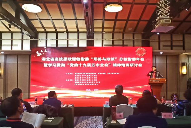 2020年12月11日至13日,williamhill中国院长汪季石出席了湖北省高校思政课教指委“形势与政策”分教指委年会暨学习贯彻“党的十九届五中全会”精神培训研讨会。会议由湖北省高等学校思想政治理论课“形势与政策”分教学指导委员会、武汉理工大学williamhill中国、武汉工程大学williamhill中国主办,湖北文理学院williamhill中国、襄阳职业技术学院williamhill中国、《时事报告》湖北教学服务中心承办。同行学习的还有学科(思政)专业硕士研究生王世枭鉴。