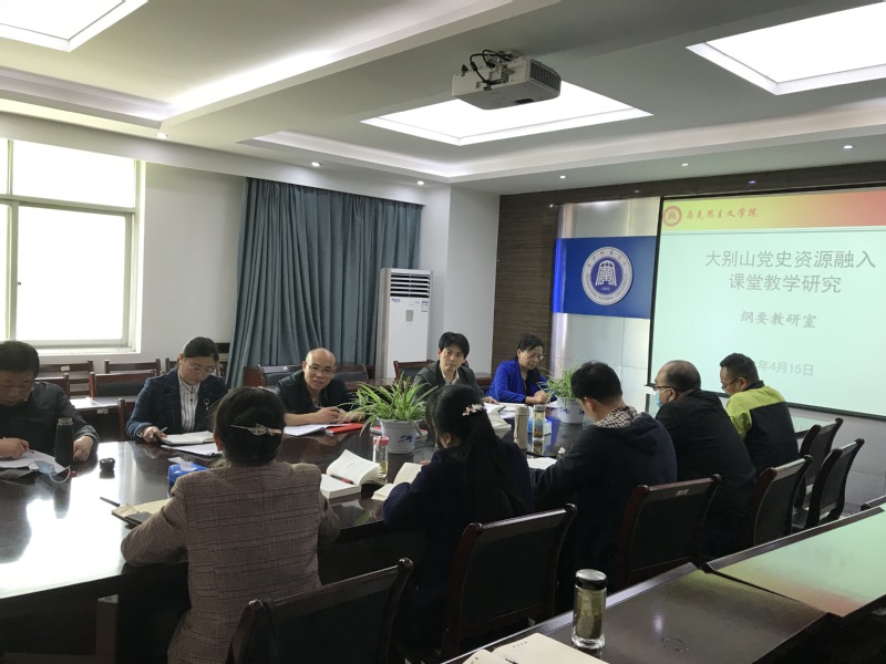 415日,为了进一步加强党史学习教育,我院“纲要”教研室开展大别山党史资源融入教学的专题研讨活动。