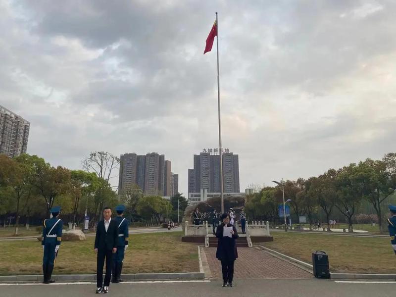 迎着朝阳,国旗班的升旗手们护卫着鲜艳的五星红旗入场,他们着装整齐、步伐矫健,伴随着《义勇军进行曲》的响起,大家集体行注目礼,庄严肃穆。五星红旗冉冉升起,凝聚着同学们的爱国心。