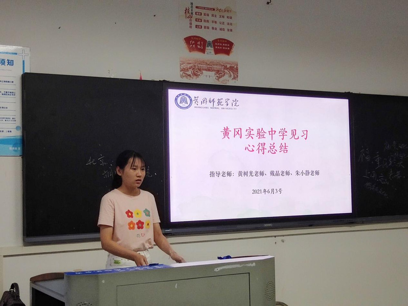 此次见习总结交流会上,首先由各见习小组派出代表在会上分享在见习学校的所见、所闻、所感。其中,黄冈实验中学代表刘薇谈到在见习期间指导老师给予了很多帮助,从而让自己对于思政专业有了更深的认识;黄冈外国语学校代表黄佳丽同学谈到在见习过程中切实感悟到了班主任工作的不易,劳动教育同等重要。黄州区一中组代表张麟同学向同学们分享着备课、授课的各项环节,同时在听课过程中要学习和反思任课老师的优缺点。