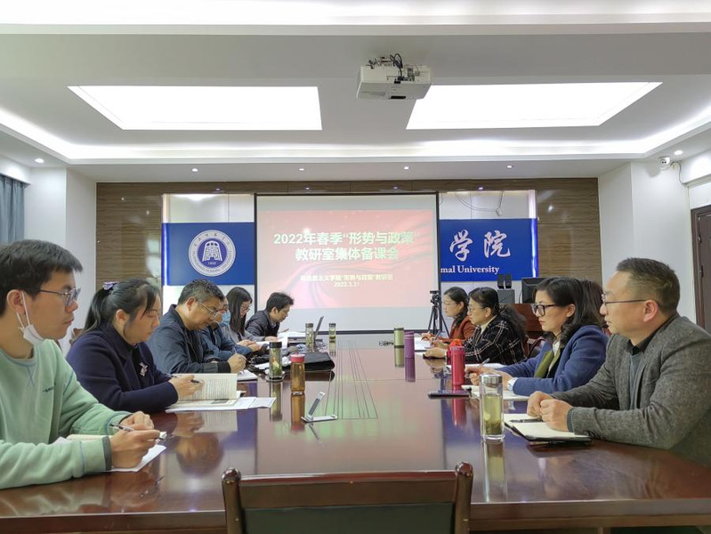2022年3月31日,“形势与政策”教研室全体教师开展了本学期授课专题的集体备课会,学校教学督导刘清教授、williamhill中国党总支书记汪辉、副院长王贵东以及其他教研室主任参加了此次会议,会议由院长助理、“形势与政策”教研室主任蔡潇博士主持。