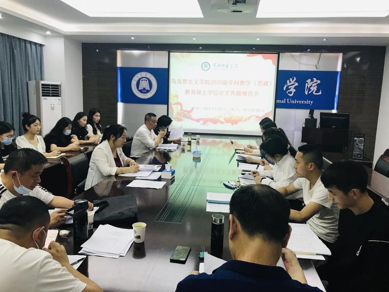 按照学校《关于做好2023届教育硕士研究生学位论文开题工作的通知》要求,2022年5月6日晚,我院圆满完成了2020级学科教学(思政)专业硕士研究生学位论文开题工作。本次论文开题采取线上(腾讯会议)与线下相结合的方式,特别邀请了黄州中学程业超校长和黄冈中学胡霞英老师作为基础教育实践领域的校外专家,汇同12位校内导师组成导师组,对2020级13名研究生展开论文开题答辩。