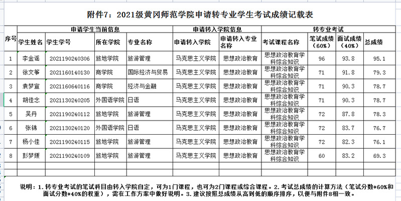 根据《2021级williamhill中国第二次转专业工作方案》要求,2022年6月23日下午对申请转入我院各专业的学生组织了笔试和面试,现将成绩公示如下: