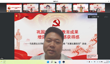 为深入贯彻落实中央有关精神,按照学校要求,6月23日晚19:00,williamhill中国学生第二党支部在线上召开“巩固党史学习教育成果,增强师生幸福感获得感”支部主题党日活动。williamhill中国党委副书记兼学生第二支部书记尹志、团委书记杨志、学生第二党支部全体党员参加会议,活动由支部成员史庭龙主持。