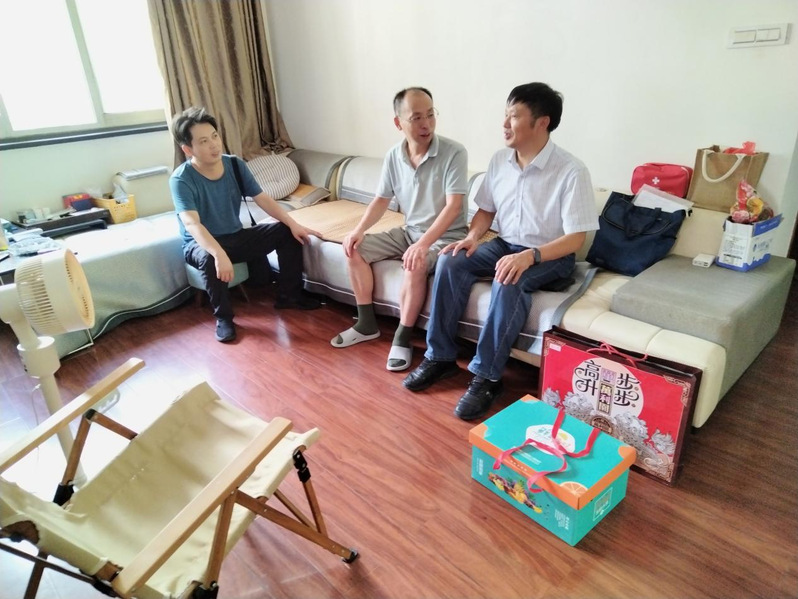 学院领导分别走访慰问了我院潘松文老师、陈松老师和余延池老师,给他们送上了中秋节慰问品,感谢他们长期以来在教师岗位上辛勤付出和为学院发展做出的积极贡献。院领导与他们亲切交谈,并祝他们工作顺利,双节快乐!