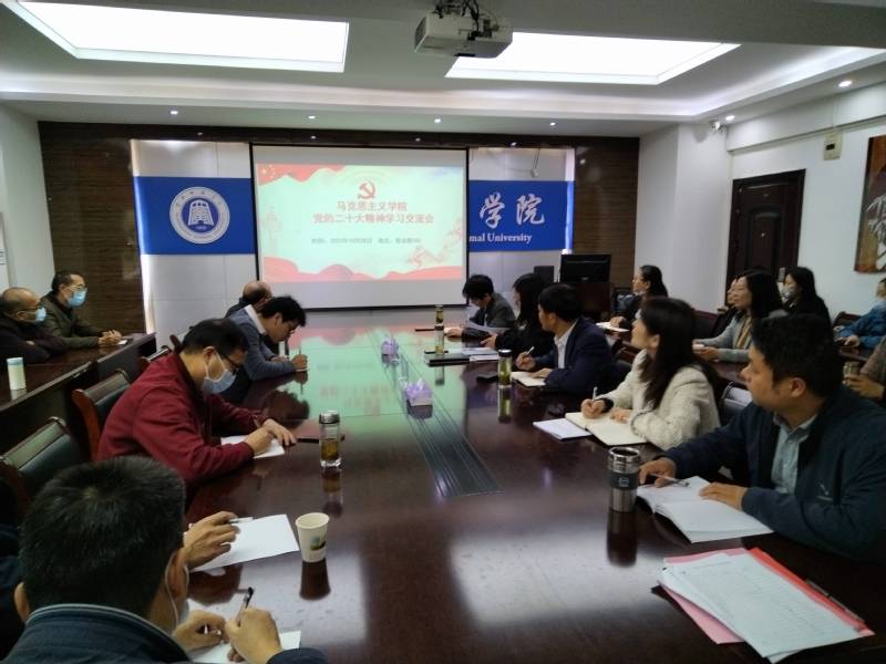 10月28日上午,我院在致远楼305会议室举行了贯彻党的二十大精神学习交流会,学院党委书记汪辉、院长汪季石、党委副书记尹志、副院长王贵东、夏慧出席会议,全体教师党员和部分学生党员代表参加了学习交流会。会议由汪辉主持。