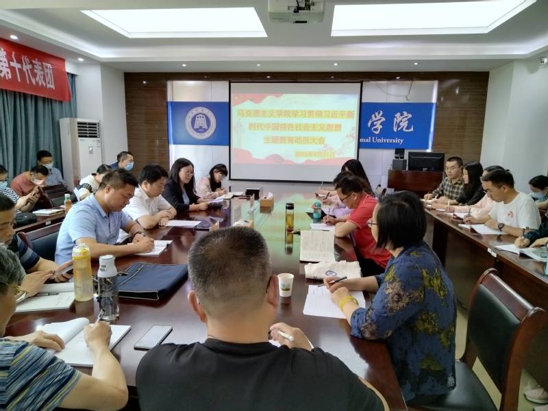 郝进仕指出,本次主题教育活动,是学习习近平新时代中国特色社会主义思想,全面贯彻落实党的伟大精神和党的教育方针,落实立德树人根本任务,奋力奋进高水平师范大学的具体实践。他要求:一是提高政治站位。自觉学习中央主题教育领导小组会议上的讲话精神,深刻领会开展主题教育的重大政治意义、理论意义和实践意义,用习近平新时代中国特色社会主义思想凝心铸魂,更加自觉在思想上,政治上,行动上同以习近平同志为核心的党中央保持高度一致;二是把握好总要求。学思想,强党性,重实践,建新功,要深刻领会总要求,把主题教育与马院的中心工作结合起来,精心谋划,抓重点,补短板,推进主题教育取得实效,推进工作稳步向前。三是锚定目标任务。学思用贯通,坚持知行合一,牢牢把握主题教育主线,一切工作要求,围绕目标主线展开。四是聚焦重点措施。把学和做结合起来,责和改结合起来,以完成马院目标任务为着力点,强化工作实效。五是强化组织领导。压实领导责任,精心谋划,靠前指挥,督促指导,为主题教育营造良好氛围。