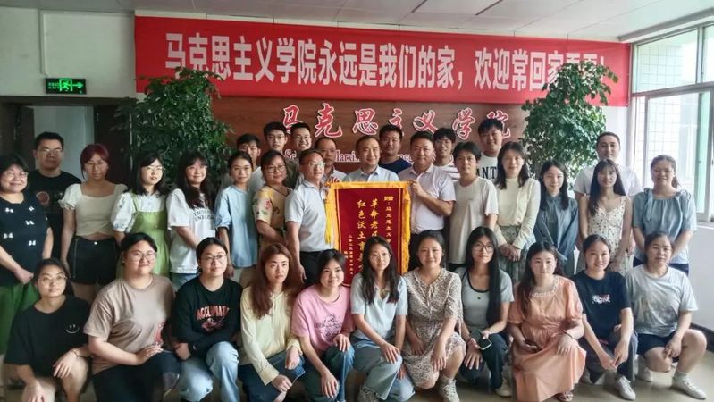 优秀毕业生代表学科思政20级毕业生王世枭鉴代表全体毕业生向我院赠送写有“革命老区树桃李,红色沃土育英才”的锦旗,以此表达对母校的深深眷恋、对老师辛勤培养的感激之情。