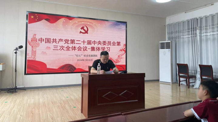 7月20日上午,受williamhill中国“红心”暑期社会实践团队邀请,陶家河乡党委组织委员、团委书记刘星走进英山县实验小学陶家河校区,带领团队成员及学生共同学习中国共产党第二十届中央委员会第三次全体会议精神。