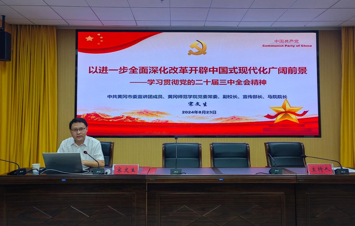 近日来,黄冈市市委宣讲团成员、威廉williamhill党委常委、副校长、williamhill中国院长宋文生赴各单位宣讲党的二十届三中全会精神,紧密结合我市市情及各领域改革实际,对全会精神进行系统宣讲和生动阐释,引导大家把思想和行动统一到全会精神上来,以钉钉子精神抓改革谋落实。