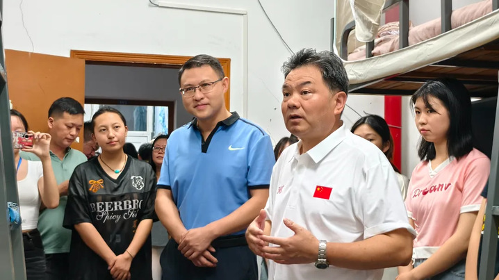 陈向军详细了解了新生们的基本情况和四年的学习生活规划,并结合学校的办学历史和办学特色,现场对新生开展了“入学第一课”教育。他勉励新生:一要珍惜时光,努力学习,尽快调整好状态,规划好大学生活;二要取长补短,学会相处,处理好人际关系,促进自身与同学的共同成长;三要加强实践和锻炼,让身心都得到健康成长;四要统筹发展和安全,注意宿舍用电规范,防范电信网络诈骗,以安全促长远发展。