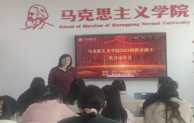 会上,刘琼老师详细解读了教育实习任务、具体要求以及实习安全注意事项。裴艳丽院助就开展实习工作做动员讲话。她指出2023级学子要把握三个维度:以敬畏之心对待教育使命,用专业素养塑造师者风范,凭赤子情怀书写育人答卷。尤其强调在新时代教育背景下,思政教师更应成为五育并举的践行者,既要精进专项技能,更要深植教育情怀,认真落实立德树人根本任务,潜心教书育人。同时嘱咐学生们注意人身及财产安全,处理好与实习单位之间的关系。