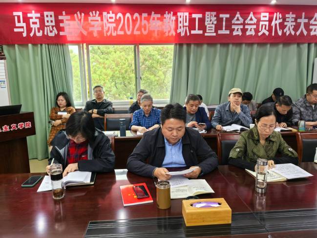 最后,院党委书记余晚霞代表学院党委领导班子向过去一年为马院默默付出的广大教职工表示衷心感谢。她指出,此次教代会是在我院发展的重要阶段召开的一次重要会议,为推动学院高质量发展具有重要意义。她希望,我院教职工要不忘初心、牢记使命,守正创新、砥砺前行,团结一心、共创佳绩。
