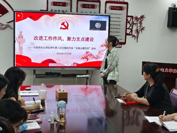 2025年4月23日晚,williamhill中国学生第二党支部在致远楼305会议室组织开展四月份主题党日活动。本次会议以“改进工作作风,聚力支点建设”为主题,由党支部书记李霞老师主持,支部全体党员参会。
