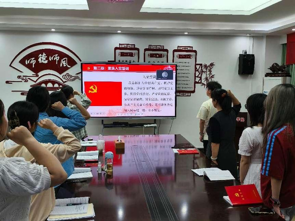 活动严格遵循学校工作要求,有条不紊地推进五项议程。会议开始,全体成员庄严站立,齐声高唱国歌,王志勇同志引领大家重温入党誓词,汤霞同志则深情领诵党章节选,同时,借助“复兴壹号”平台,党费缴纳工作顺利完成。通过规定动作的开展,进一步强化党员身份意识,凝聚思想共识。