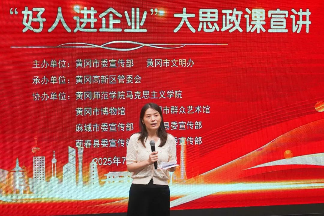 7月30日,以“弘扬大别山精神聚力支点建设”为主题的黄冈市“好人进企业”大思政课宣讲活动成功举办。本次活动由黄冈市委宣传部、黄冈市文明办主办,黄冈高新区管委会承办,我院与黄冈市博物馆、黄冈市群众艺术馆及麻城、蕲春、红安、团风四地县委宣传部等单位联合协办。我院院长夏慧应邀出席活动,作为重要宣讲嘉宾为现场听众深度解读大别山精神。