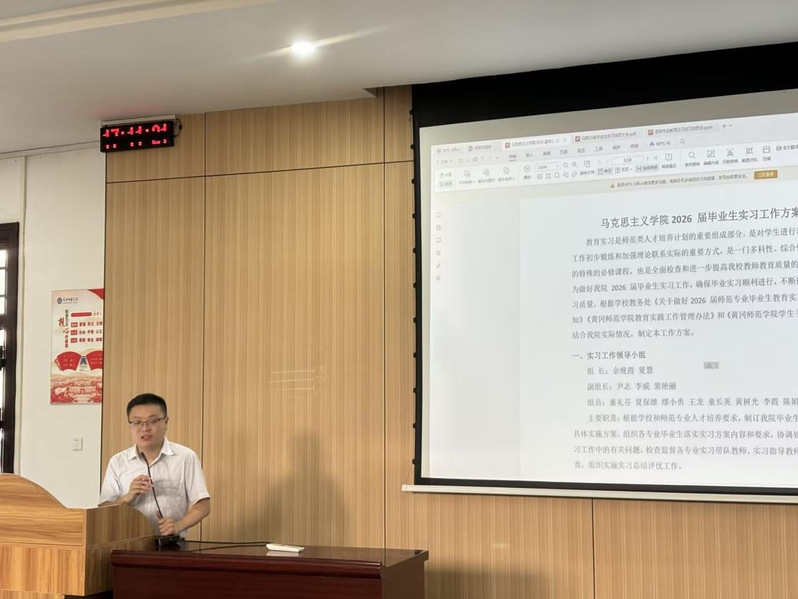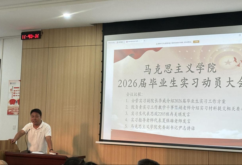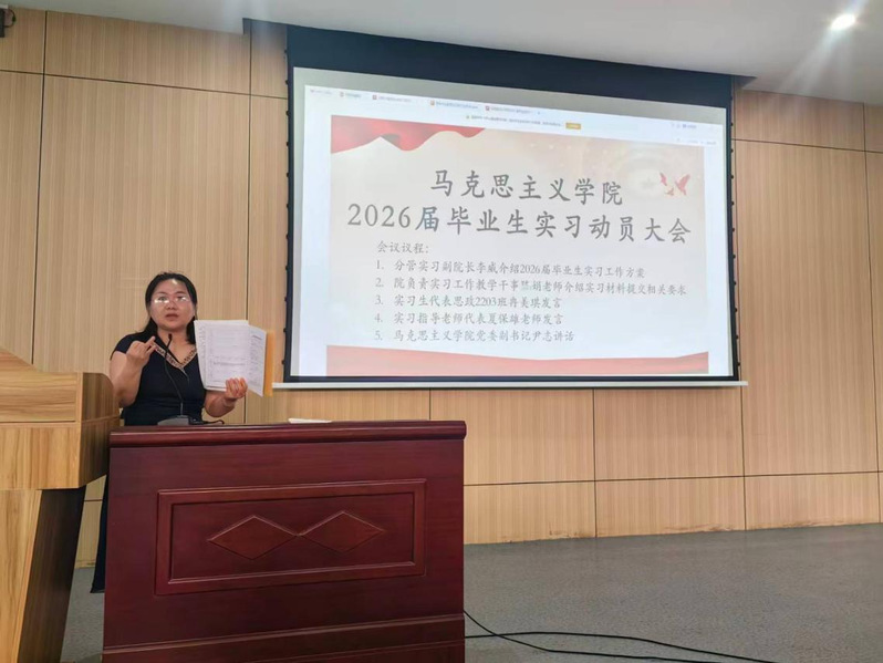 大会在热烈的氛围中拉开序幕。首先,副院长李威详细介绍了2026届毕业生实习工作方案,从实习目标、内容安排、单位分配、管理规范及考核要求等方面进行了全面说明。他强调,教育实习是师范生培养的关键环节,是检验理论学习和提升实践能力的重要平台,希望同学们充分重视、积极准备,在实践锻炼中增长才干。