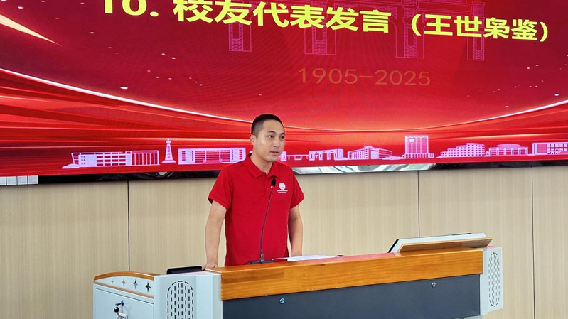 校友代表王世枭鉴分享从黄师学子到基层思政工作者的历程,真挚感谢学校“理论+实践”的培养模式,引发在场师生共鸣。