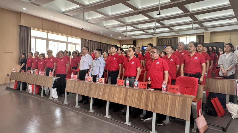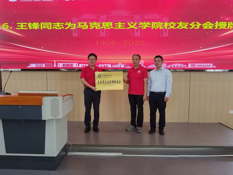 学校办公室副主任王锋代表学校校友会为分会授牌,顾问梅福林、会长吴又存代表分会接牌。