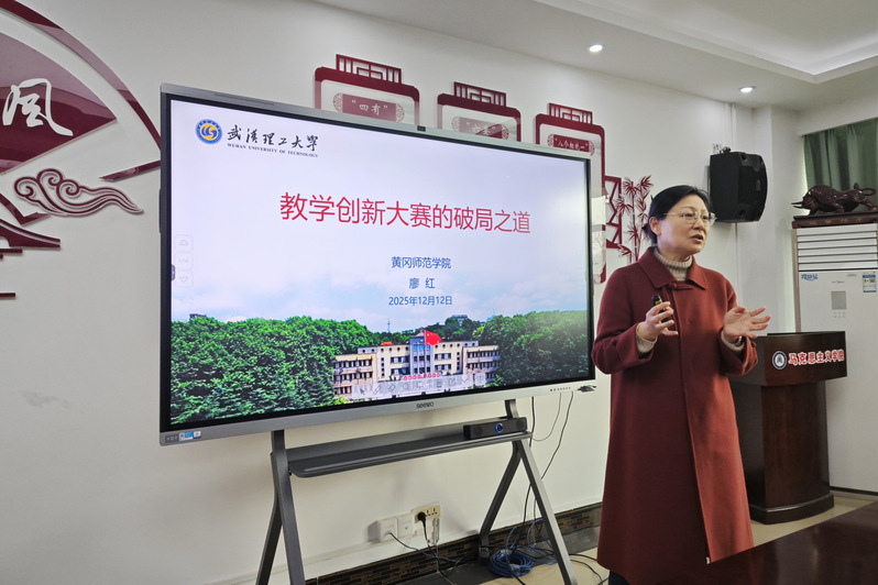 为切实提升教师教学创新能力,助力我校教师高效备战第六届湖北省高校教师教学创新大赛,12月12日下午,我院特邀武汉理工大学廖红教授,在学院305会议室作题为《教学创新大赛破局之道》的专题辅导报告。学院全体教师到场参会,张薇薇、李翠等校内其他学院参赛教师列席旁听。报告会由我院副院长李威主持。