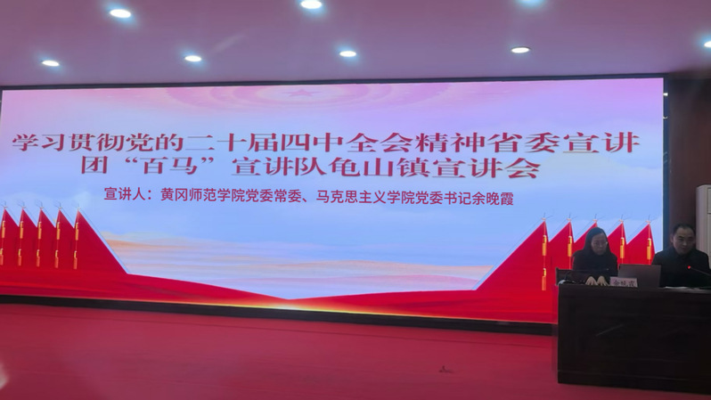 12月12日下午,我院省委讲师团“百马”宣讲队赴“理论热点面对面”结对基地麻城市龟山镇,开展党的二十届四中全会精神专题宣讲暨基层调研活动。校党委常委、williamhill中国党委书记余晚霞,院长助理陈永典出席活动。本次活动以集中“专题宣讲”“座谈宣传”、实地“田间走访”和入户“围坐面谈”等深度互动的学习交流形式,面向基层党员干部和群众开展理论宣讲与民情调研,推动党的创新理论深入基层、惠及群众。
