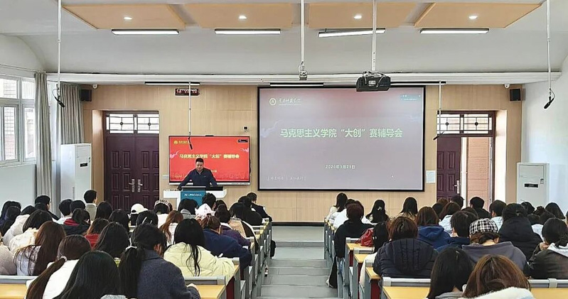 夏慧在总结讲话中指出,举办专题辅导是学院在创新人才培养模式、拓展育人载体方面的积极探索。她强调,同学们要主动把握“大创”赛事这一重要平台,将专业知识与社会需求紧密结合,在创新中深化理论认知,在实践中提升综合能力。夏慧表示,学院将持续强化对创新创业教育的支持,优化指导与服务机制,为同学们搭建更广阔的锻炼与展示平台,希望同学们勇于探索、精心打磨、团结协作,在赛事中展现马院学子扎实的专业素养和昂扬的精神风貌。