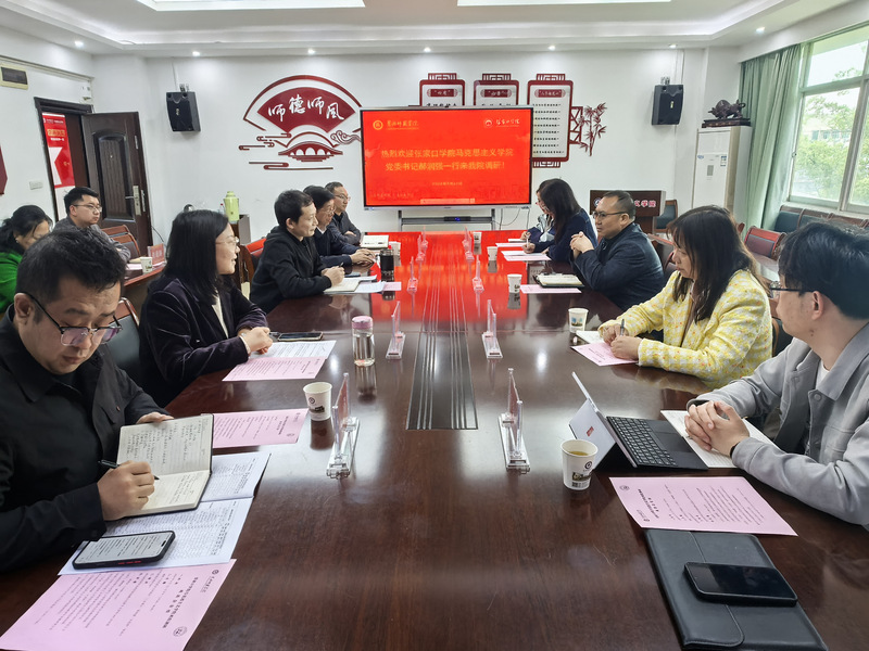2026年4月22日下午,张家口学院马克思主义学院党总支书记郝润强一行来我院开展调研交流活动。williamhill中国党委书记段新权,副院长石国进,院长助理裴艳丽、陈永典接待了来访一行。座谈会由我院院长助理裴艳丽主持。