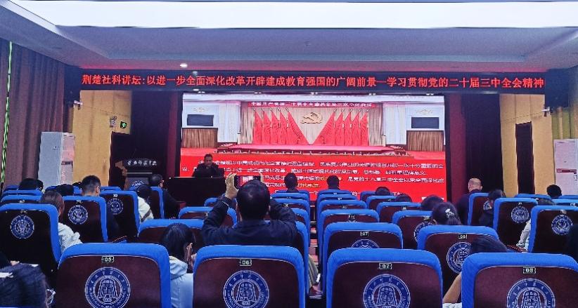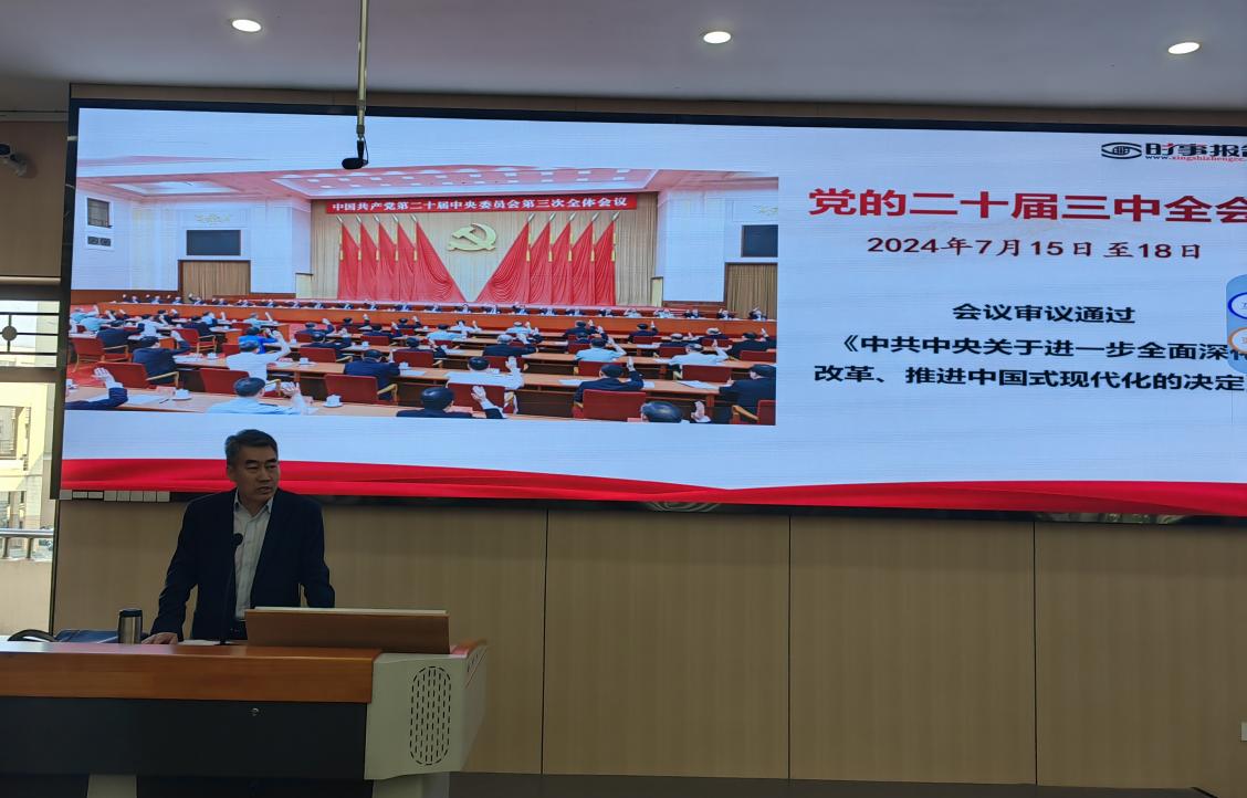 10月22日下午,校党委常委、副校长宋文生以《以进一步全面深化改革开辟建成教育强国的广阔前景——学习贯彻党的二十届三中全会精神》为题,为数学与统计学院2024级新生讲授思政课。