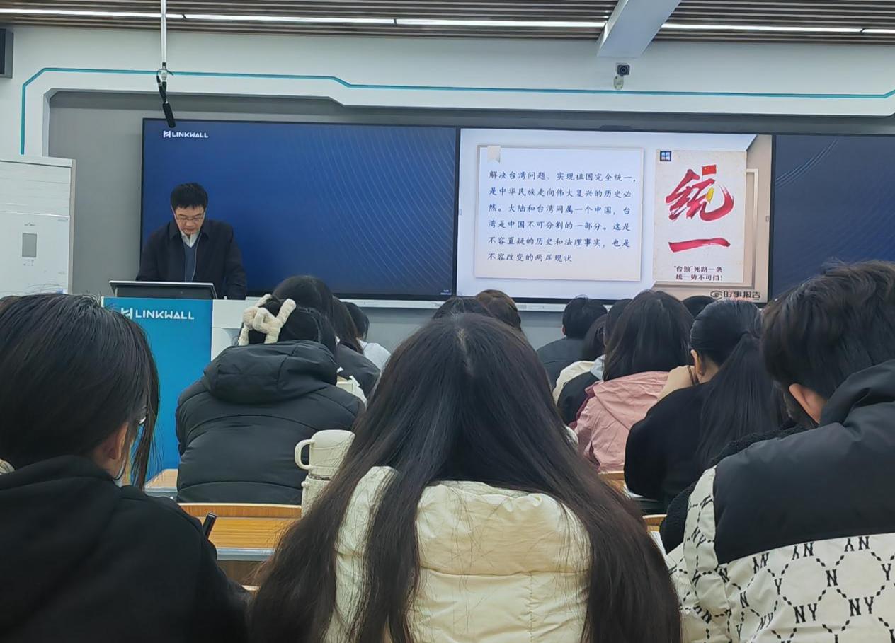 11月20日下午,校党委副书记陈朝阳以《坚定前行谋统一 续写民族新辉煌》为题,为williamhill中国思想政治教育专业2024级学生讲授思政课。