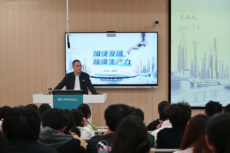 10月29日下午,校党委副书记、校长漆昌柱以《加快发展新质生产力》为题,为计算机学院2024级软件工程专业学生讲授思政课。漆昌柱从习近平总书记首次提出新质生产力的概念出发,系统梳理了新质生产力的发展历程,紧密结合当前国家发展战略和地方实际,阐述了因地制宜发展新质生产力的重要性和紧迫性,围绕什么是新质生产力、为什么要发展新质生产力、怎样发展新质发展力、发展新质生产力我们何为等多个维度深入浅出地讲解了加快发展新质生产力的路径,为同学们打开了一扇理解新时代经济发展新趋势的窗户。